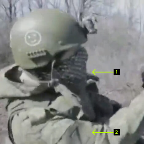 Что касается третьего военного, который, вероятнее всего, относится к структуре ВС РФ/Росгвардии, то он имеет гораздо лучшую экипировку, личный нож, прикрепленный к форме в районе ключицы, а также характерный шарф-арафатку, которым закрывает свое лицо.