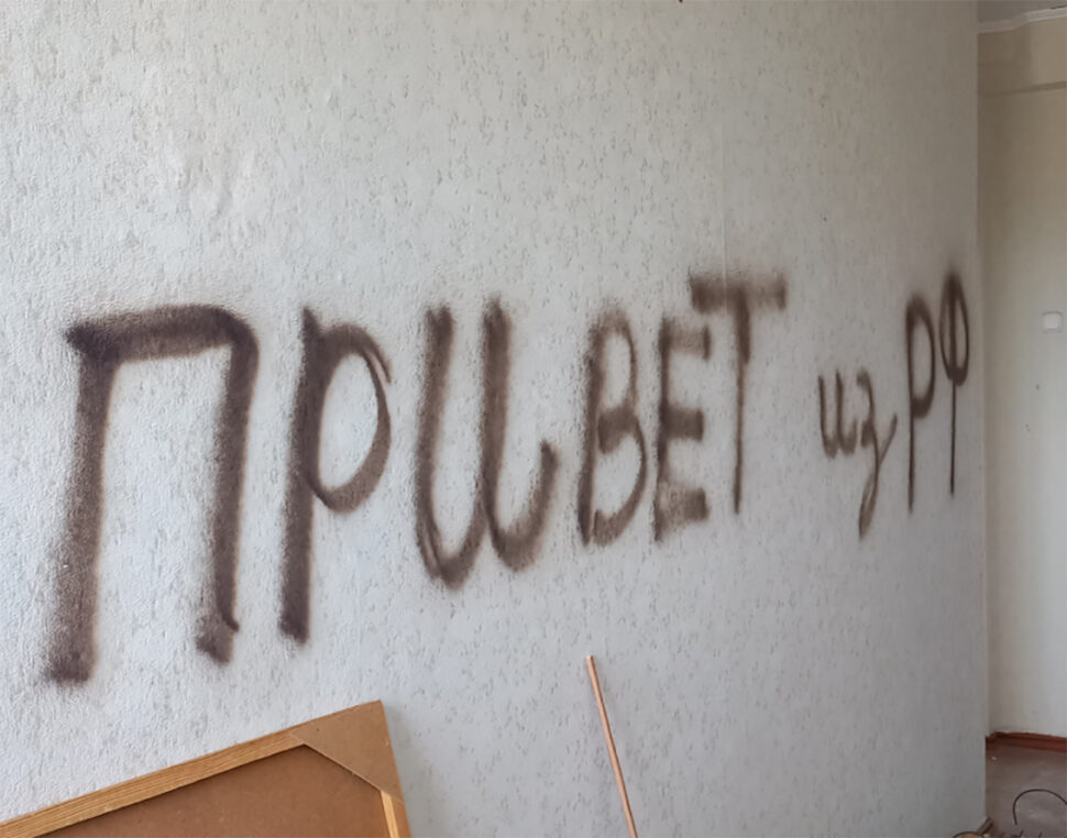 Признаки пребывания русских военных в школе в Капитоловке. Источник: Truth Hounds, апрель 2023 г.