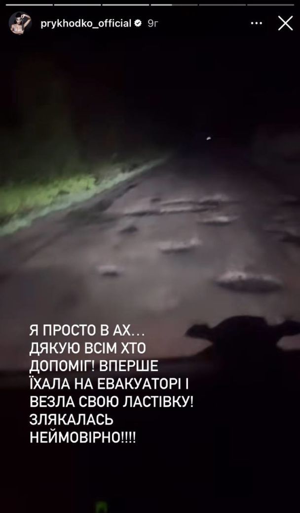 "Спасибо всем, кто помог. Впервые ехала на эвакуаторе и везла свою "ласточку". Испугалась невероятно", - добавила певица.