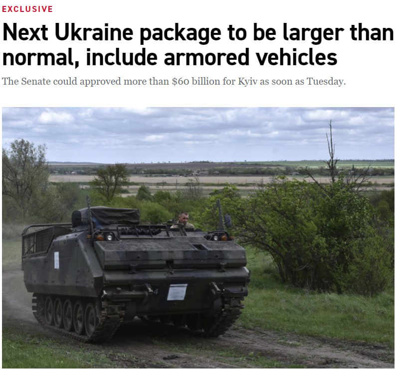 Следующий пакет военной помощи США для Украины будет значительно больше обычного и его направят сразу после того, как Сенат окончательно утвердит закон о содействии Киеву, недавно принятый Палатой представителей.