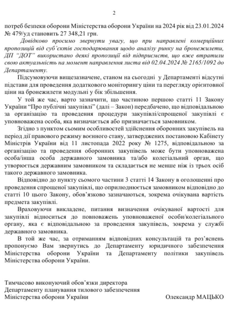 Все изменилось на прошлой неделе, когда Половенко был уволен с должности замминистра. Сразу после этого уже другое подразделение Минобороны – Департамент политики закупок под руководством Глеба Каневского – ответило «ДОТу»: