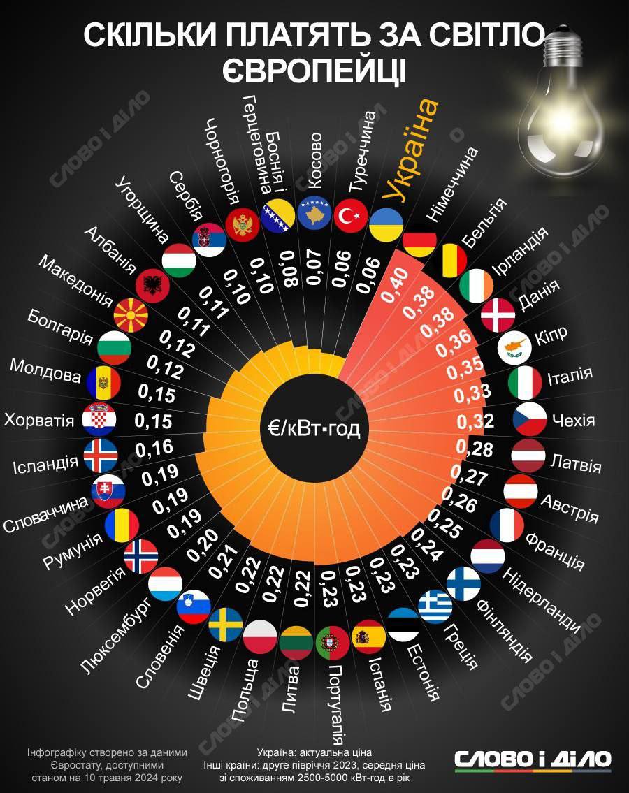 В пересчете в валюту украинцы платят 6 евроцентов за киловатт.