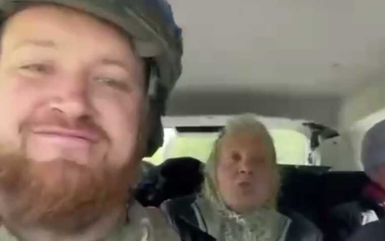Во время эвакуации из Волчанская женщина декламирует отрывок стихотворения «Заповіт» Шевченко