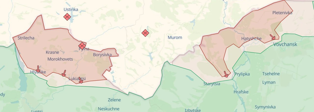 Американский "Институт изучения войны" сообщает, что российские войска продвинулись к востоку от Глубокого (к северу от Липцов). Под Волчанском россияне дошли до северных окраин села Старица (к западу от Волчанска).