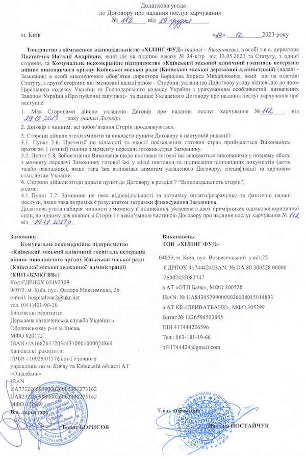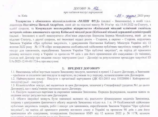 Пример третий. Договор между ООО “ХИЛИНГ ФУД” из пула “Foodicine” и КНП “Киевский городской клинический госпиталь ветеранов войны”: