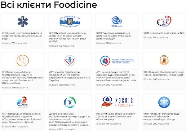 "8 лет бизнеса, 7 600 пациентов ежедневно, 9 Пищевых производств, 62 медицинских учреждения, с которыми сотрудничаем." – говорится на сайте Foodicine.