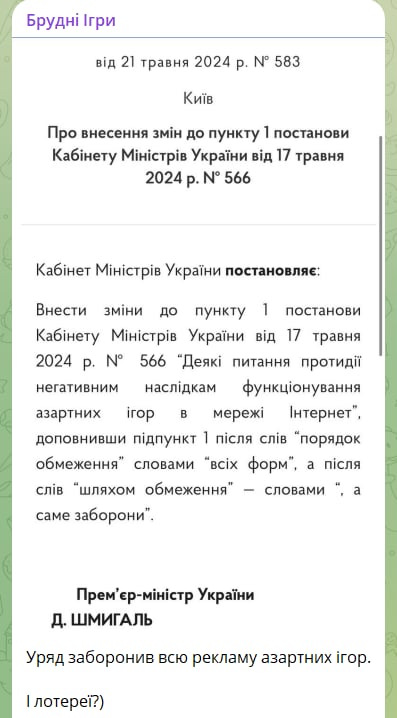 Оно будет действовать до вступления в силу закона о борьбе с игровой зависимостью, который находится на рассмотрении Верховной Рады.