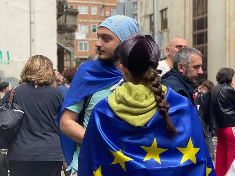 Несогласные с законом пришли с флагами Грузии и ЕС. Они заявляют, что путь Грузии – это Европа.