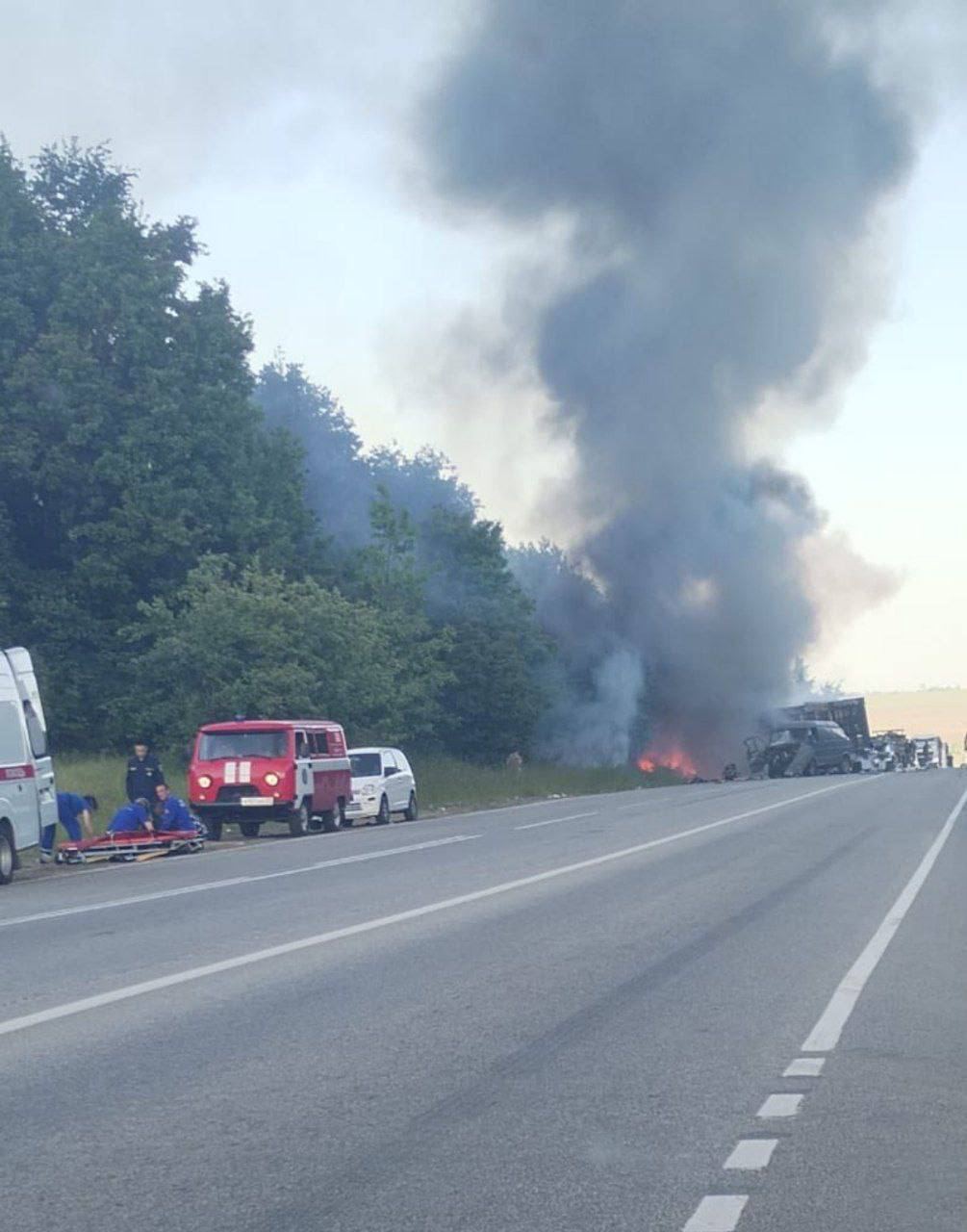 В РФ на Белгородщине тягач с танком-мангалом врезался в фуру