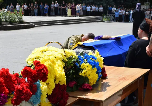 В четверг, 6 июня, жители Шепетовки, стоя на коленях, провели защитника в последнюю земную дорогу.