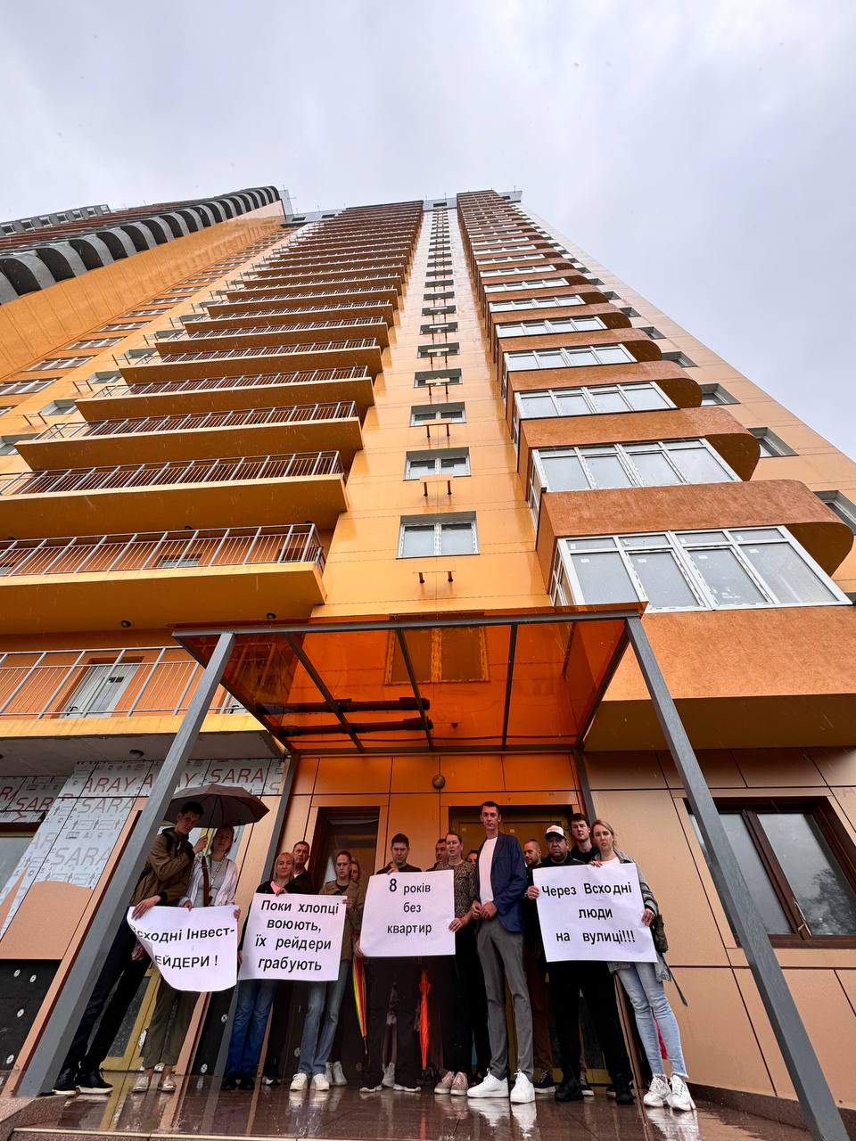 Однако представитель инициативной группы Виталий Беспалый сообщил, что действия «украинских рейдеров» заставили владельцев квартир выйти на митинг для обращения внимания властей Украины к своей беде. Пострадавших сейчас насчитывается более 300 семей, которые инвестировали более 250 миллионов гривен.