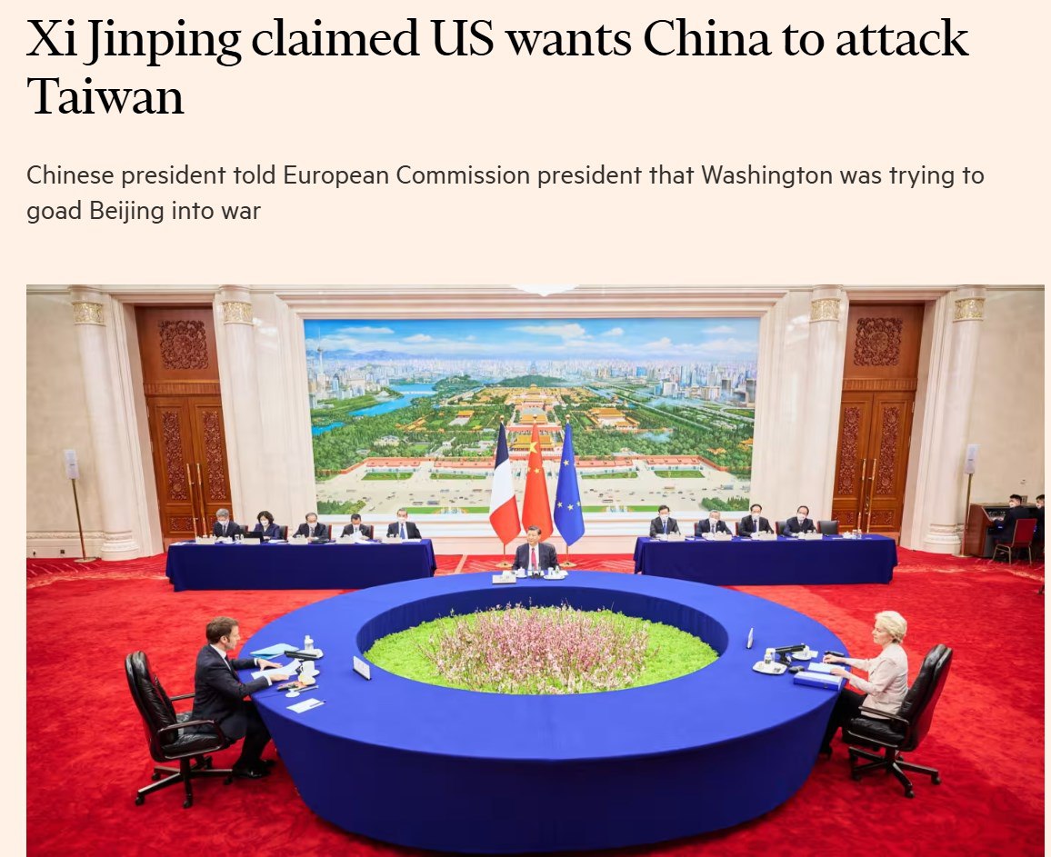 Financial Times сообщает, что Вашингтон пытается спровоцировать Пекин напасть на Тайвань. Об этом, как утверждают источники издания, председатель КНР Си Цзиньпин заявил главе Еврокомиссии Урсуле фон дер Ляйен.