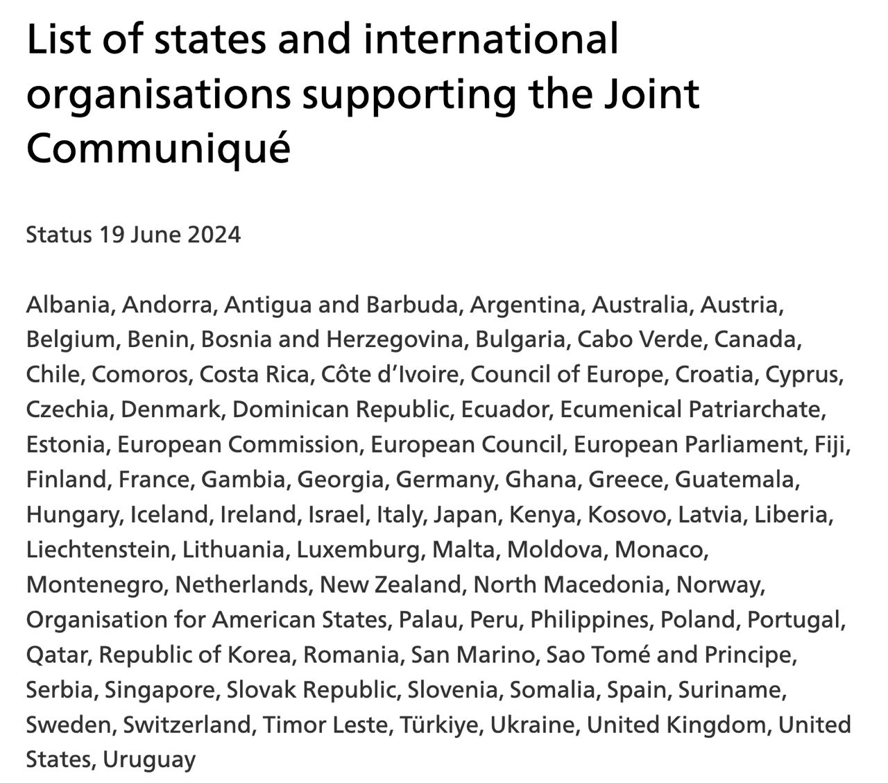 Таким образом, поддержали коммюнике уже 84 государства и организации.