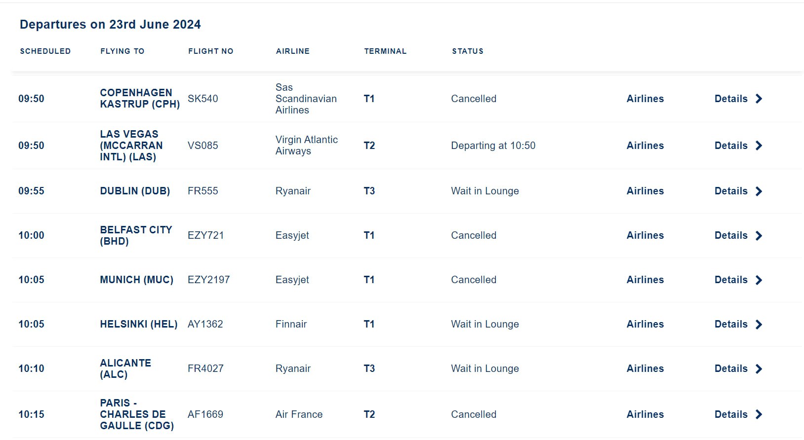 Прибывающие самолёты перенаправляют в другие аэропорты — Бирмингем и Лондон.