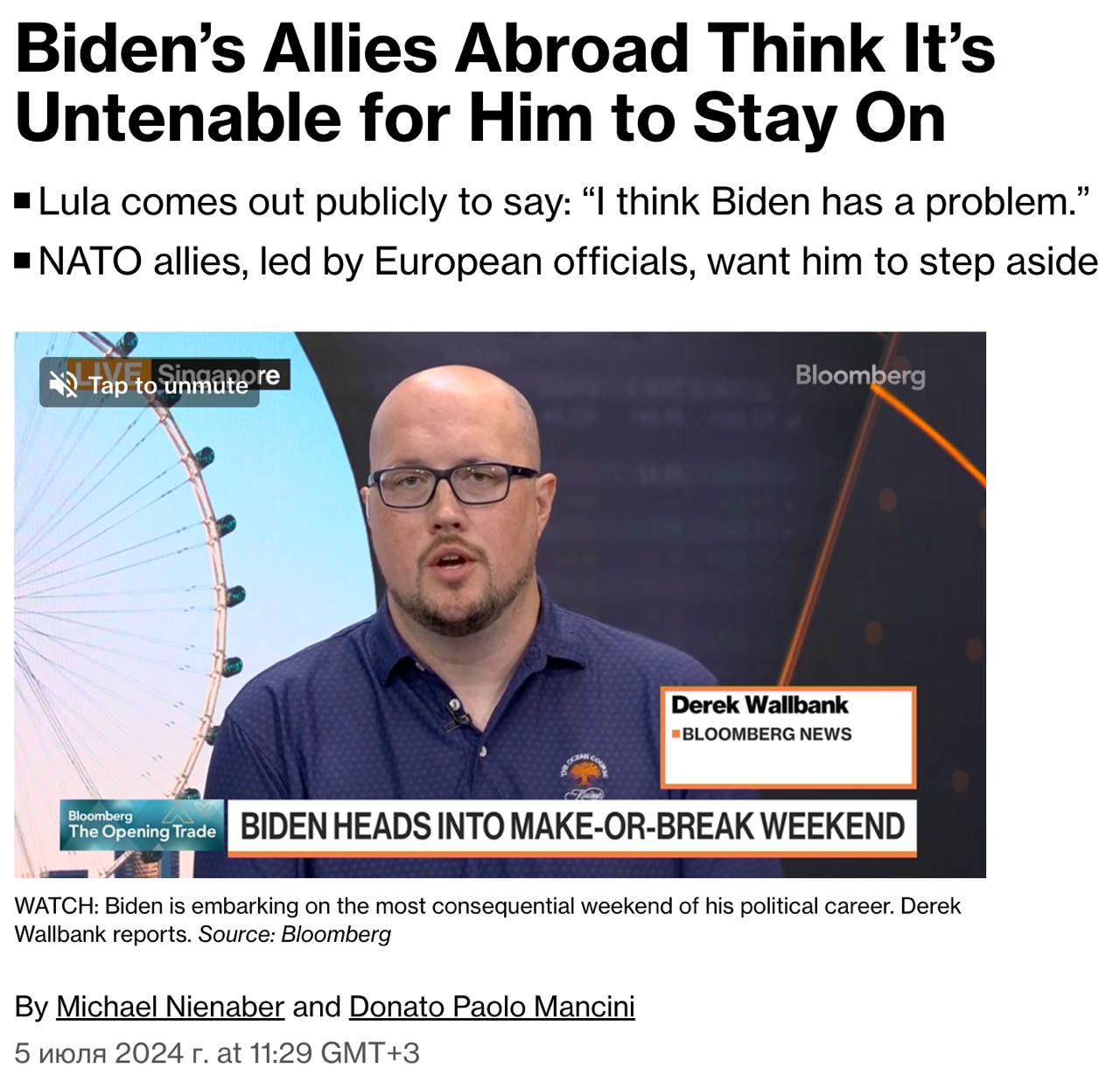 Bloomberg пишет, что европейские чиновники хотят, чтобы Байден снялся с выборов.