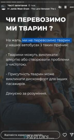 В свою очередь в Instagram-аккаунте перевозчика в актуальных Stories под названием "Частые вопросы" указано, что их компания запрещает перевозку животных. Эта "сторис" было опубликована еще шесть недель назад.