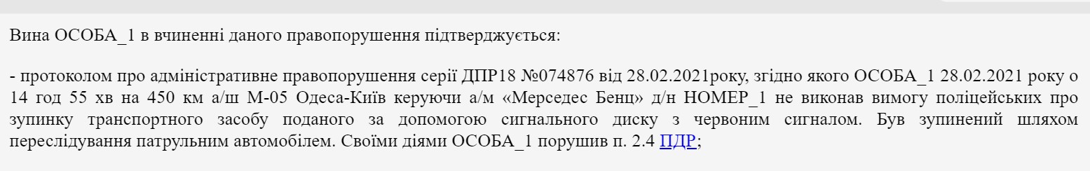 Согласно полицейскому протоколу, Дмитрий Андреевич Адамовский, управляя автомобилем "Мерседес", 28.02.2021 года проигнорировал требование патрульных остановиться. За что был оштрафован аж на 153 гривны. Данные о принудительном взыскании этого штрафа отсутствуют, так что надо полагать, что Дмитрий Андреевич его уплатил добровольно. Но сам факт игнорирования требований полиции говорит о том, что Дмитрий Адамовский, несмотря на свое канадское гражданство, остается украинским рагулем, почувствовавшим вкус больших денег. Но это уже вопрос морали, а не права.