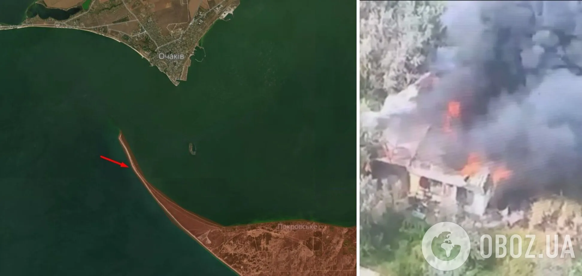 "Подразделение ВМС ВС Украины уничтожило вражеский склад боеприпасов и горюче-смазочных материалов на Кинбурнской косе в Черном море", – говорится в подписи к ролику.