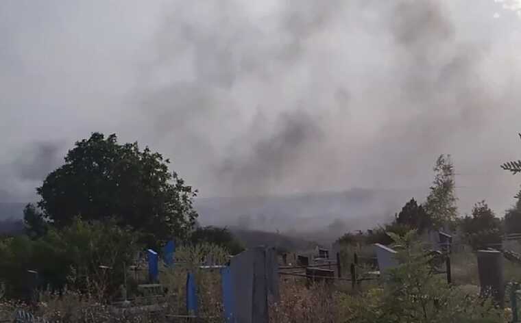 Первоначально горела трава на окрестных полях, но потом пожар дошел до кладбища.