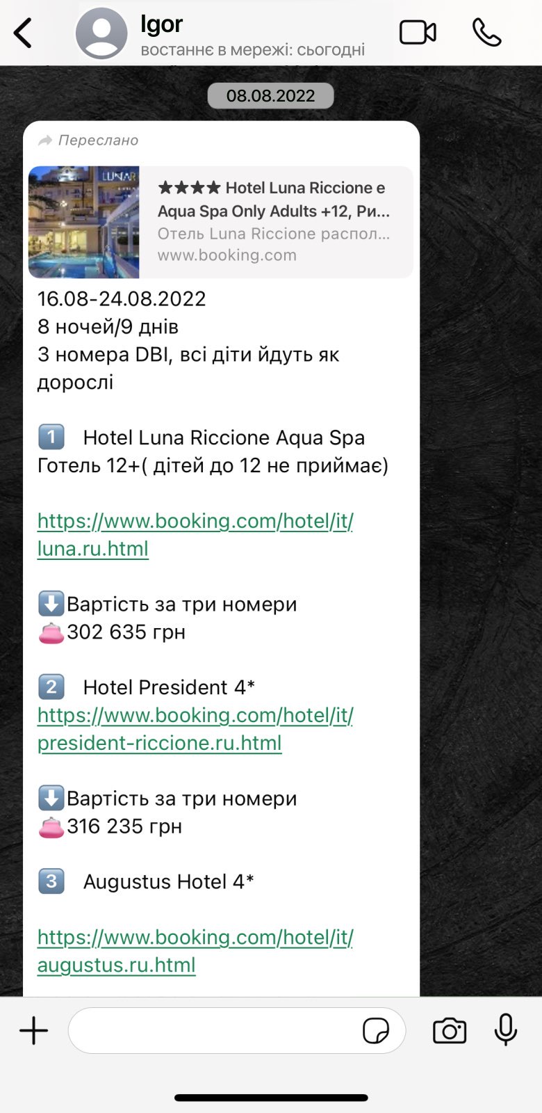 При полномасштабном вторжении, в августе 2022 года, семьи Войтко и Удовиченко начинают планировать общий отдых на Итальянском побережье. Выбирают отели, согласовывают даты бронирования.