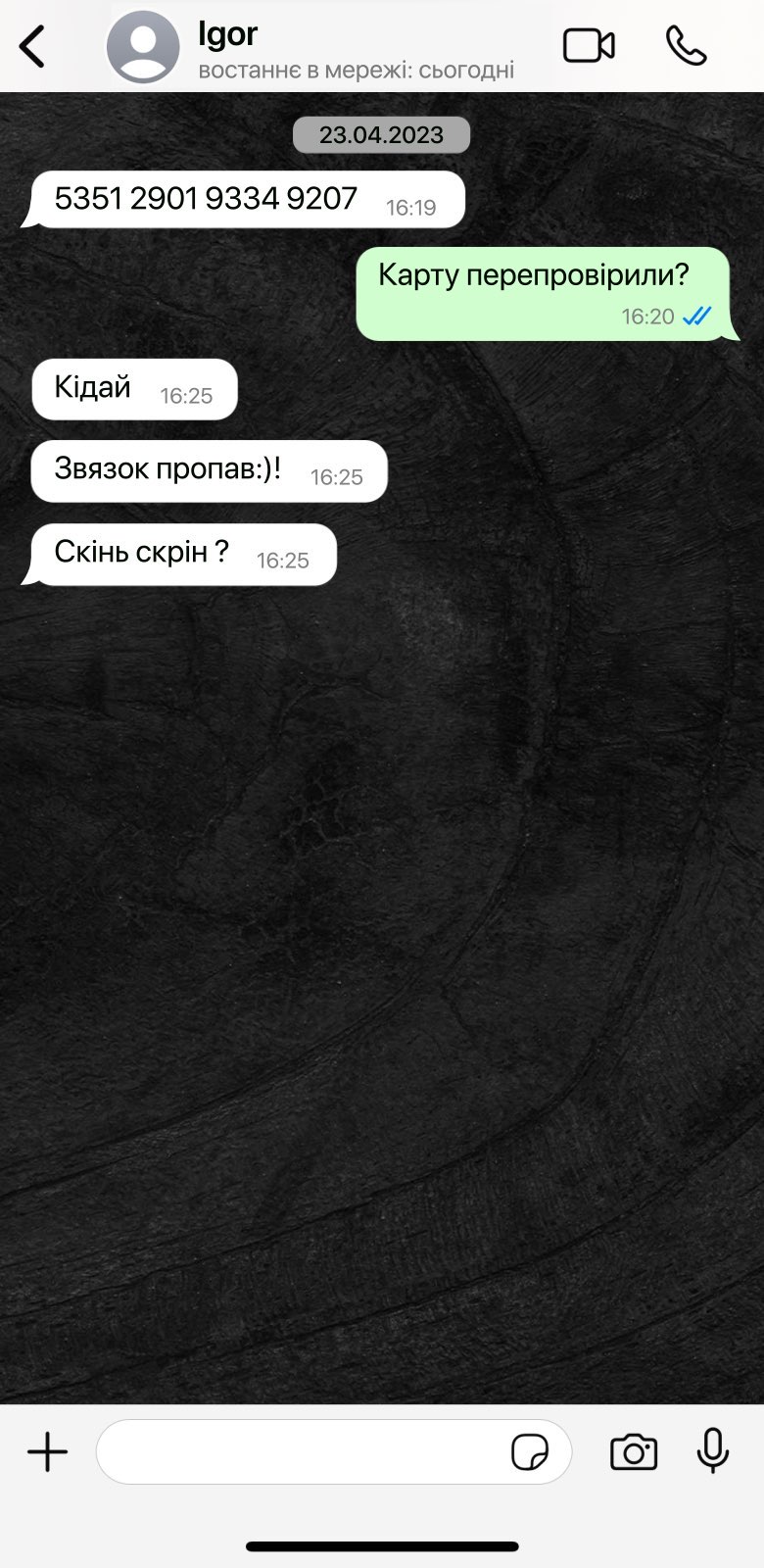 передавала ли ваша жена Алла Удовиченко номер вашей карты Игорю Войтко весной 2023 года, получали ли вы после этого платеж более чем в 30 тысяч гривен?