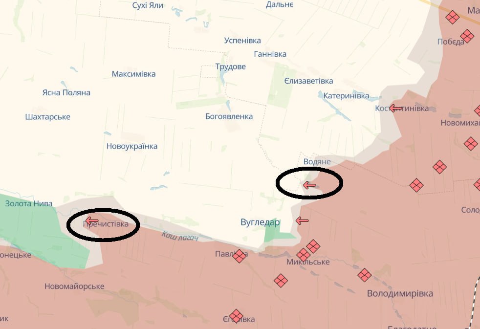 Противнику удалось взять под контроль село Пречистовка, сообщают аналитики DeepState. По их информации, враги также достигли успехов в окрестностях села Водяное, которое находится близ города Угледар.