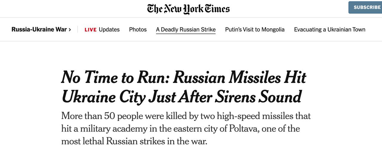 Атака РФ по Полтаве стала "деморализующим ударом для Украины", - NYT