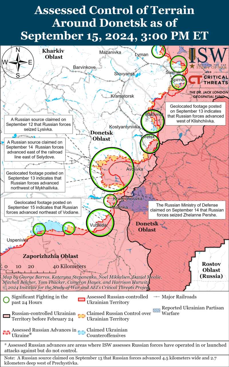 Самый горячий 16 сентября – Кураховское направление. Враг 26 раз атаковал в сторону Украинска, Цукуриного, Желанного Первого, Георгиевки, Константиновки, Катериновки. 19 боев завершены, семь еще продолжались.