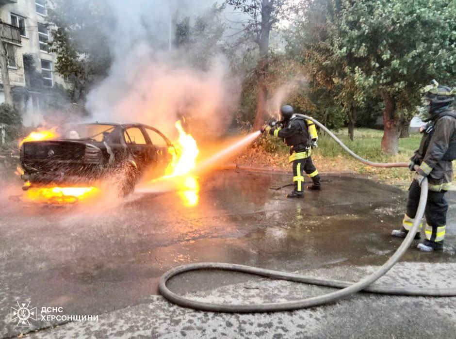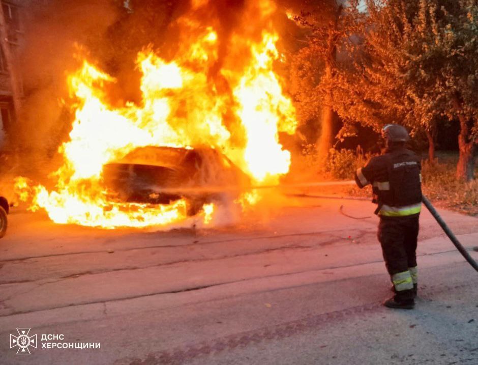 В Херсоне российский дрон сбросил взрывчатку на припаркованный автомобиль