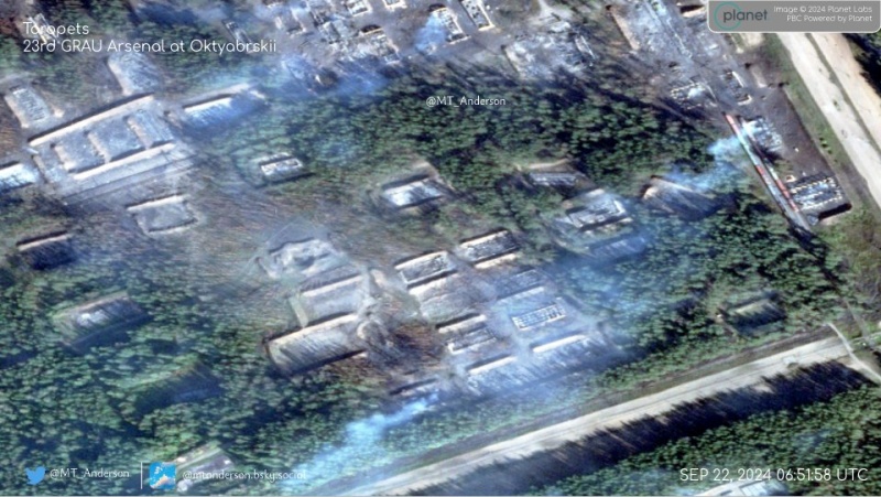 Речь идет о 23-м арсенале Главного ракетно-артиллерийского управления Минобороны РФ (ГРАУ) в поселке Октябрьский, который подвергся атаке дронов в ночь на 21 сентября.