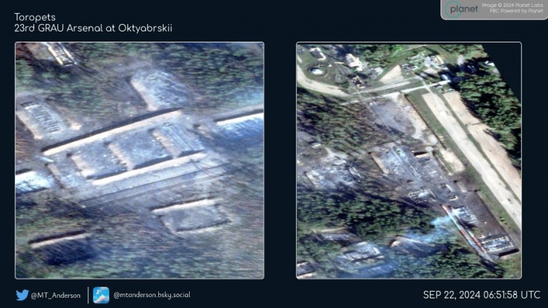 Этот склад также находится рядом с городом Торопец, где 18 сентября взорвался 107-й арсенал ГРАУ.