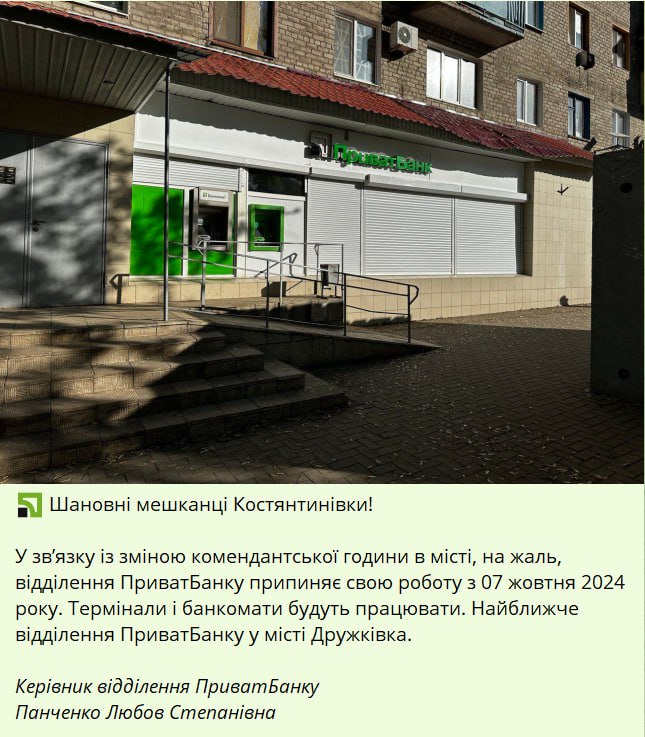 В Константиновке Донецкой области закроется отделение «ПриватБанка», как сообщило руководство данного отделения.