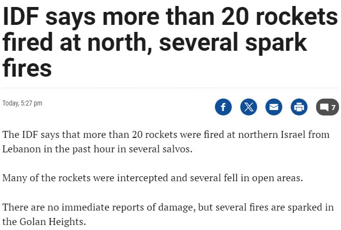 По заявлениям израильской армии, в течение часа было зафиксировано около 20 ракетных запусков с территории Ливана.