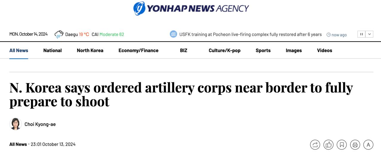Южная Корея не подтверждает запуск дронов и заявляет о подготовке КНДР к подрыву дорог на границе. По их мнению, это может произойти уже сегодня.