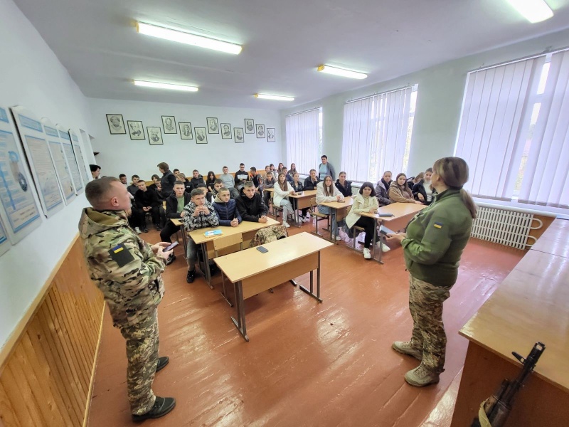 Военнослужащие РТЦК и СП проводят встречи со старшеклассниками, в ходе которых рассказывают о структуре ВСУ, современных видах вооружения и важности защиты государства от захватчиков.