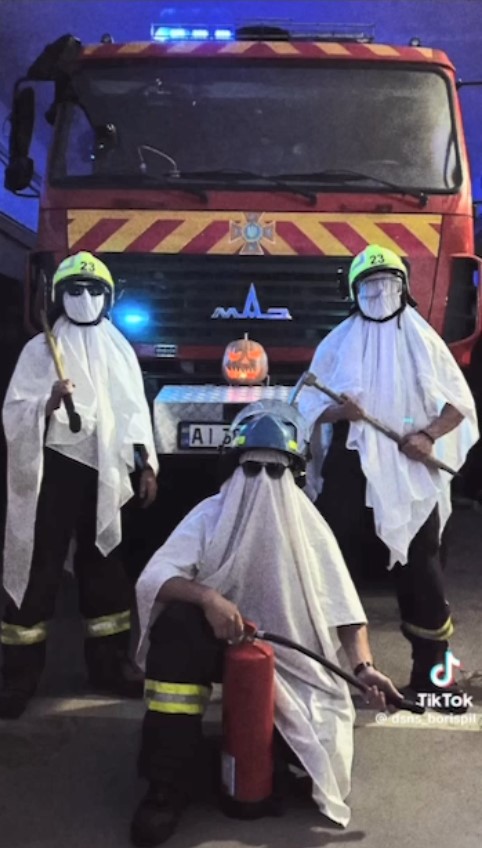 Спасатели из ГУ ГСЧС Борисполя также показали кадры празднования, которое, вероятно, началось в ночь с 30 на 31 октября — именно тогда в TikTok опубликовали соответствующие кадры. Спасатели "украсили" себя белыми простынями, касками, черными очками, взяли реквизит в руки. Спецмашину также немного изменили — поставили на капот тыкву в честь Хэллоуина-2024.