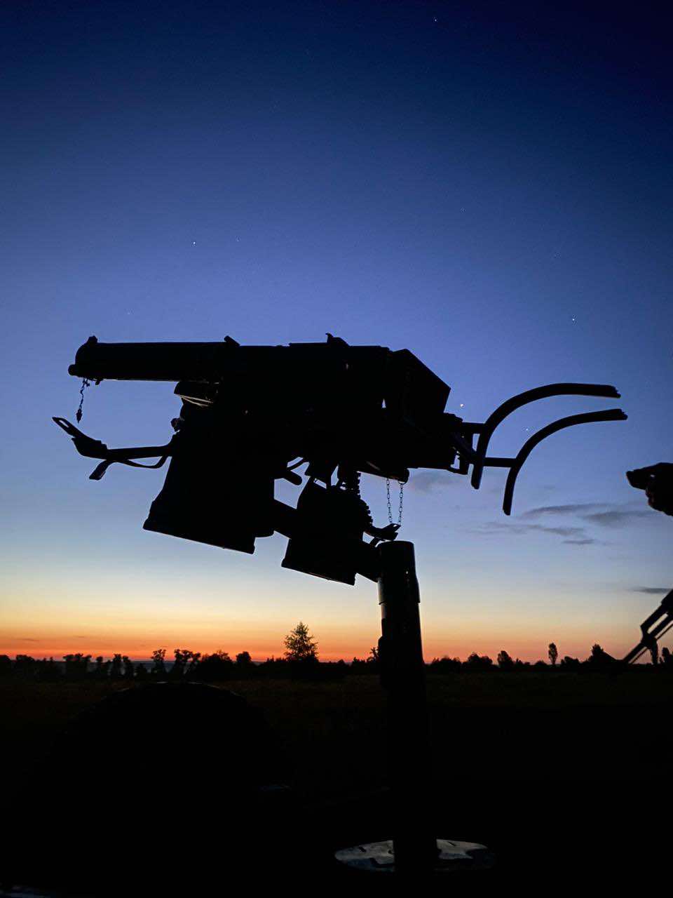 Елена: Это старое надежное оружие, дешевое и очень эффективное. На самом деле это очень мощное и убийственное оружие, потому что пулемет "Максим" стреляет со скоростью 600 патронов в минуту. Это очень быстро. И если снабжать водяное охлаждение, то можно почти непрерывно стрелять. Я, например, занимаюсь наземной охраной, но все мы проходим каждый этап, обязанности каждого члена экипажа. То есть мы должны быть готовы в любую минуту заменить друг друга. Заменить и пулеметчика, и командира, и охраняемого. Поэтому мы все – одна дружеская семья.