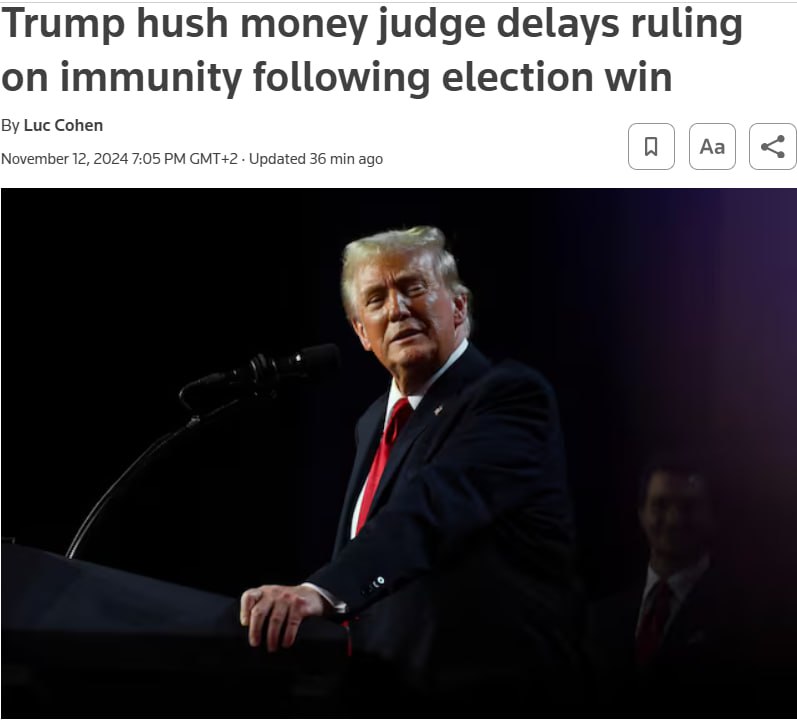 До 19 ноября прокуроры должны предоставить судье новые доводы относительно того, как переизбрание Дональда Трампа на новый срок президента США может повлиять на вынесение приговора. Первоначально приговор Трампу должен быть вынесен уже 26 ноября, но дата, скорее всего, будет изменена.