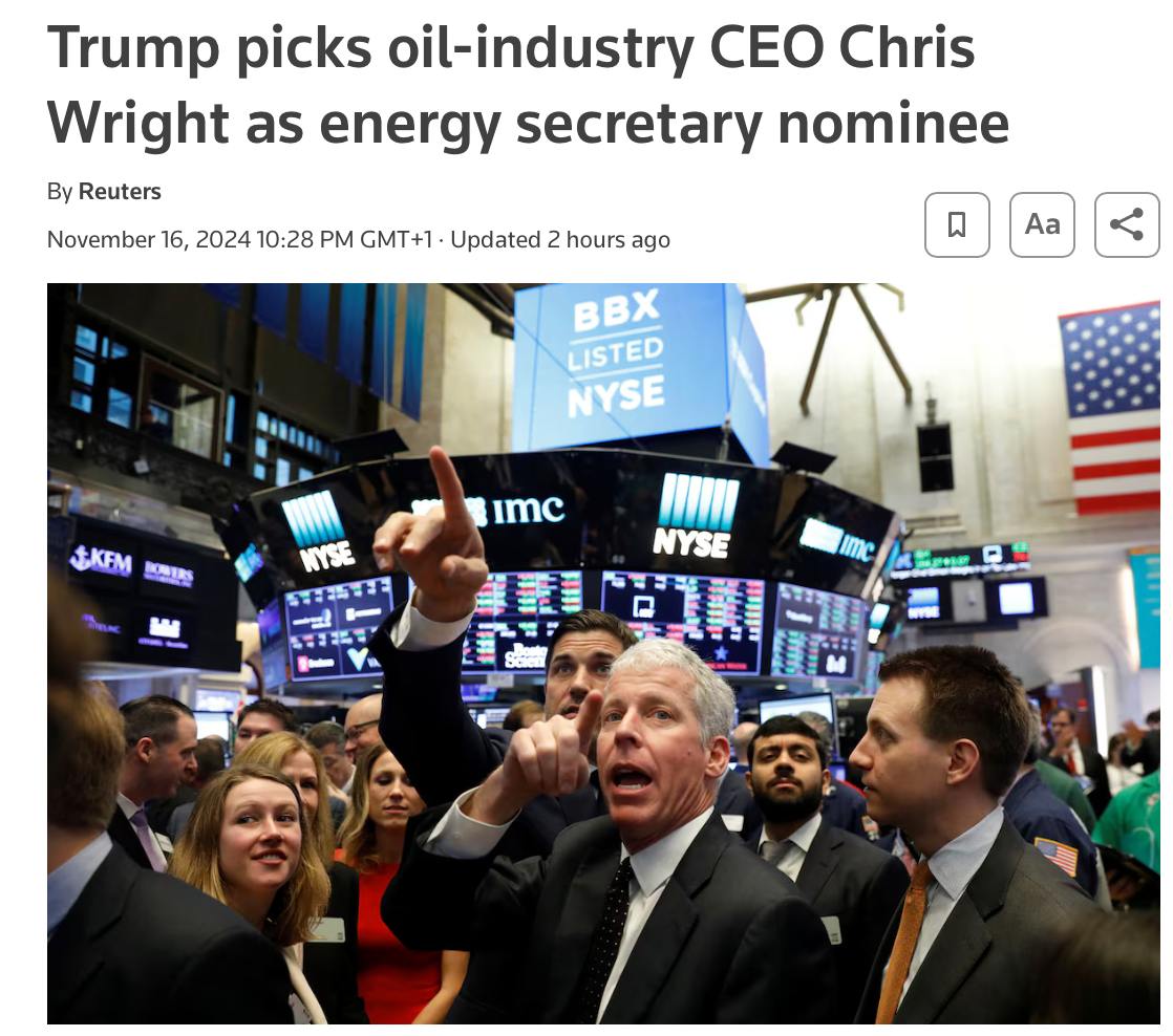 Трамп предложил на пост министра энергетики нефтяника Криса Райта