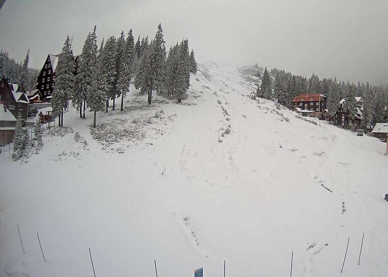 Карпаты начало покрывать снегом. В настоящее время на Драгобрате выпало уже как минимум 15 сантиметров снега.