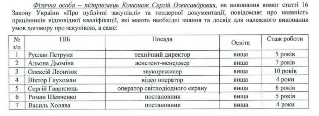 Интересные моменты есть и в самых тендерных предложениях. К примеру, одинаково подписаны названия документов. Или совместные сотрудники в справке о наличии работников, имеющих соответствующую квалификацию для предоставления услуг.