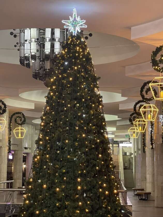 В Харькове установили новогоднюю елку на станции метро "Университет".