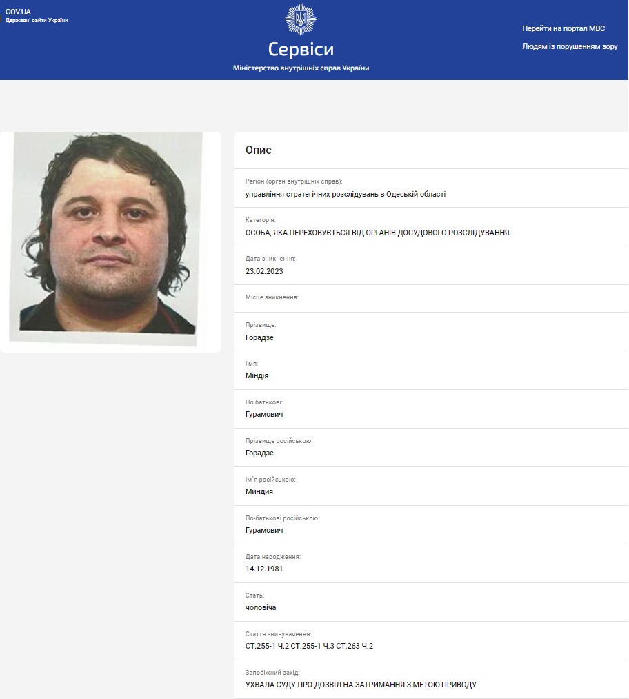 Ранее на страницах Dетектив-Info сообщалось: по итогам так называемой "сходки" в Одесском СИЗО образца 4 августа 2022 года правоохранители выдвинули подозрения по нормам "антиворовского закона", заочно сообщили о подозрении и объявили в розыск Миндию Горадзе.