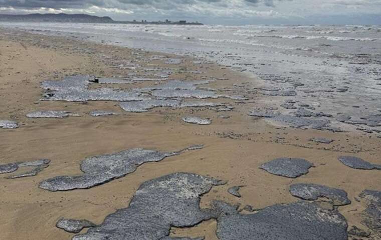 В Краснодарском крае штормом выбросило свежие пятна мазута