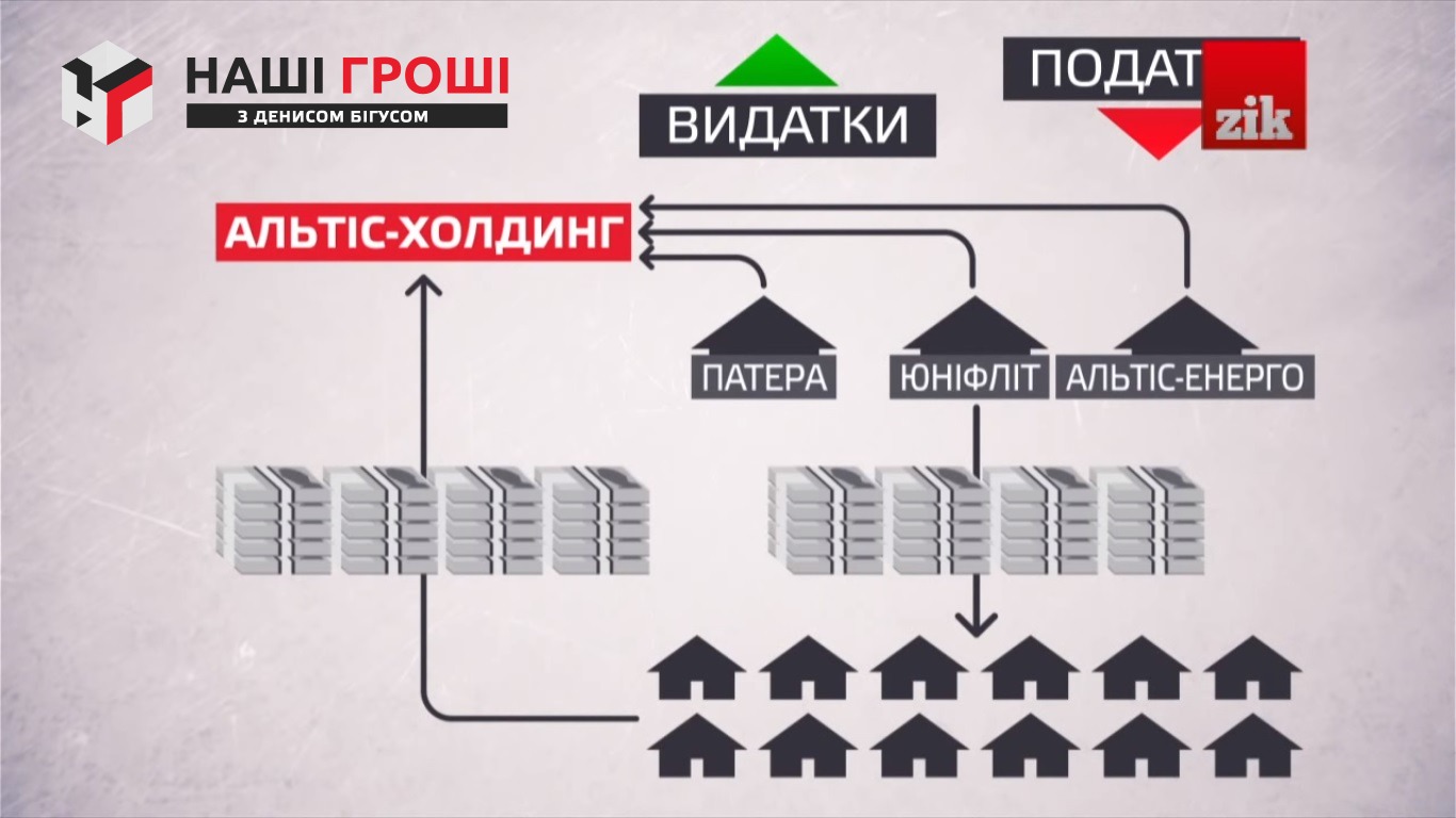 Угода, за якою податківці планували донарахувати кошти: виконання «Альтіс-Холдингом» замовлення для комунального підприємства «Дирекції будівництва шляхово-транспортних споруд м. Києва» у 2014-2015 рр. Сума угоди становила – 443 млн грн., в тому числі 73,8 млн ПДВ. За схемою угоди, наданою джерелом у податковій, отримані "Альтіс-Холдингом" кошти були перераховані на низку компаній, визначених як "сумнівні". Від комунального підприємства гроші потрапили до «Альтіс-Холдингу», а потім перераховувалися на три фірми, з яких кошти направлялися на компанії другого рівня, серед яких є реальні виконавці робіт. Тобто корпорація перераховувала кошти сама собі через низку фірм. Юрист Володимир Місечко пояснює, що така схема використовується для двох речей – для завищення своїх витрат і для переведення безготівкових коштів у готівку.