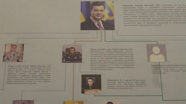 Генеральная прокуратура представила схему преступной деятельности по подавлению акций протеста, которая привела к массовым убийствам граждан Украины на Майдане.