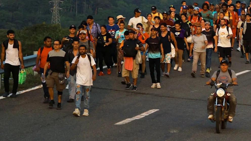 Журналисты встретили целый караван мигрантов на юге Мексики, в 1500 км от границы, которые надеются успеть пройти в США до вступления Трампа в должность. Они призывают нового президента не закрывать границу.