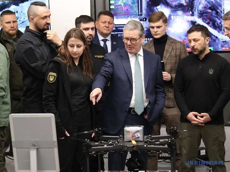 В рамках визита в Киев Стармер ознакомился с образцами украинского оружия, которое сейчас используется на фронте. В частности, осмотрели дроны-бомбардировщики и разведывательные БПЛА. В некоторых образцах используются британские технологии.