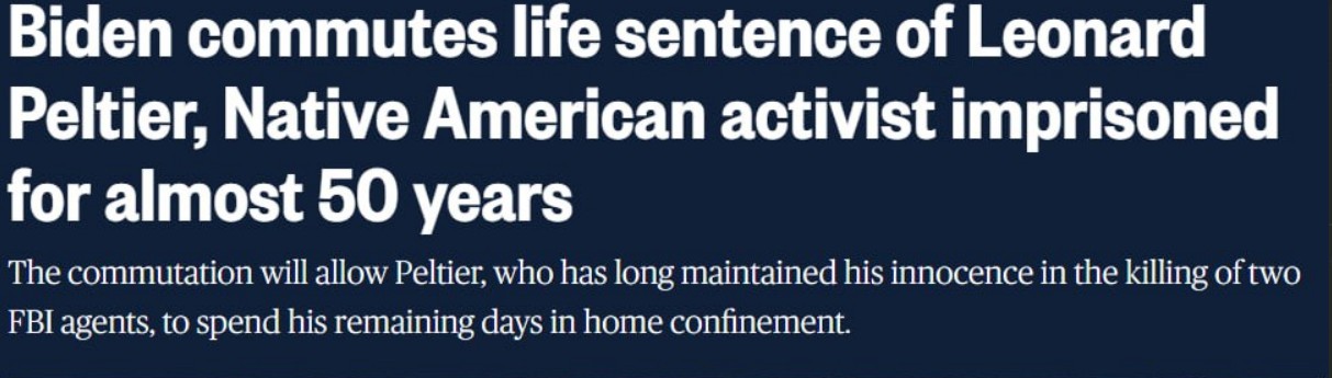 Президент США Джо Байден принял решение смягчить приговор Леонарду Пелтиеру, активисту движения американских индейцев, который в 1975 году был осуждён за убийство двух агентов ФБР.