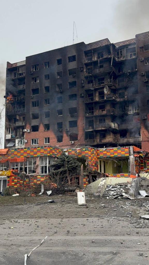 На снимках можно увидеть обгоревшие многоэтажные дома, автомобили и разрушенные учебные учреждения.